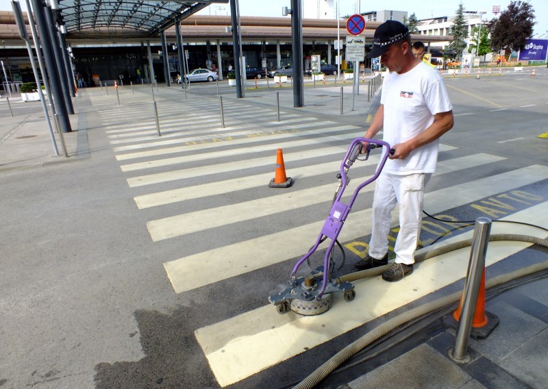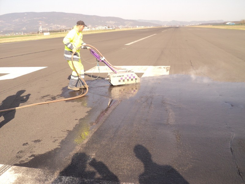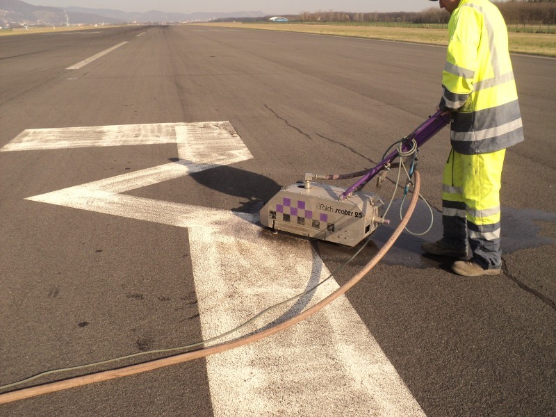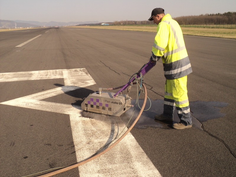 Odstranjevanje talne signalizacije na letaliških stezah