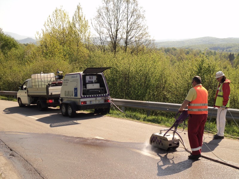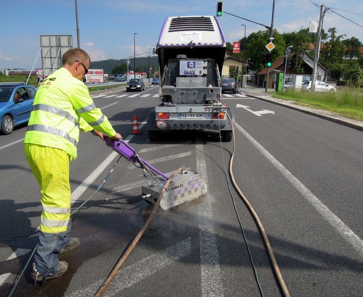 Za odstranjevanje talne signalizacije, rešetk lakirnic ali pa rešetk v čistilnih napravah uporabljamo pritisk z močjo cca 1300 do 1500 kar je odvisno od trdovratnosti materiala. Nastavitve pritiska se izvajajo s pilotom daljincem s tem pa nastavljamo tudi »globino« oz moč čiščenja. Nastavitve in hitro ter sprotno spreminjanje globine čiščenja je zelo pomembno tudi zaradi različne kvalitete materialov, ki jih čistimo.